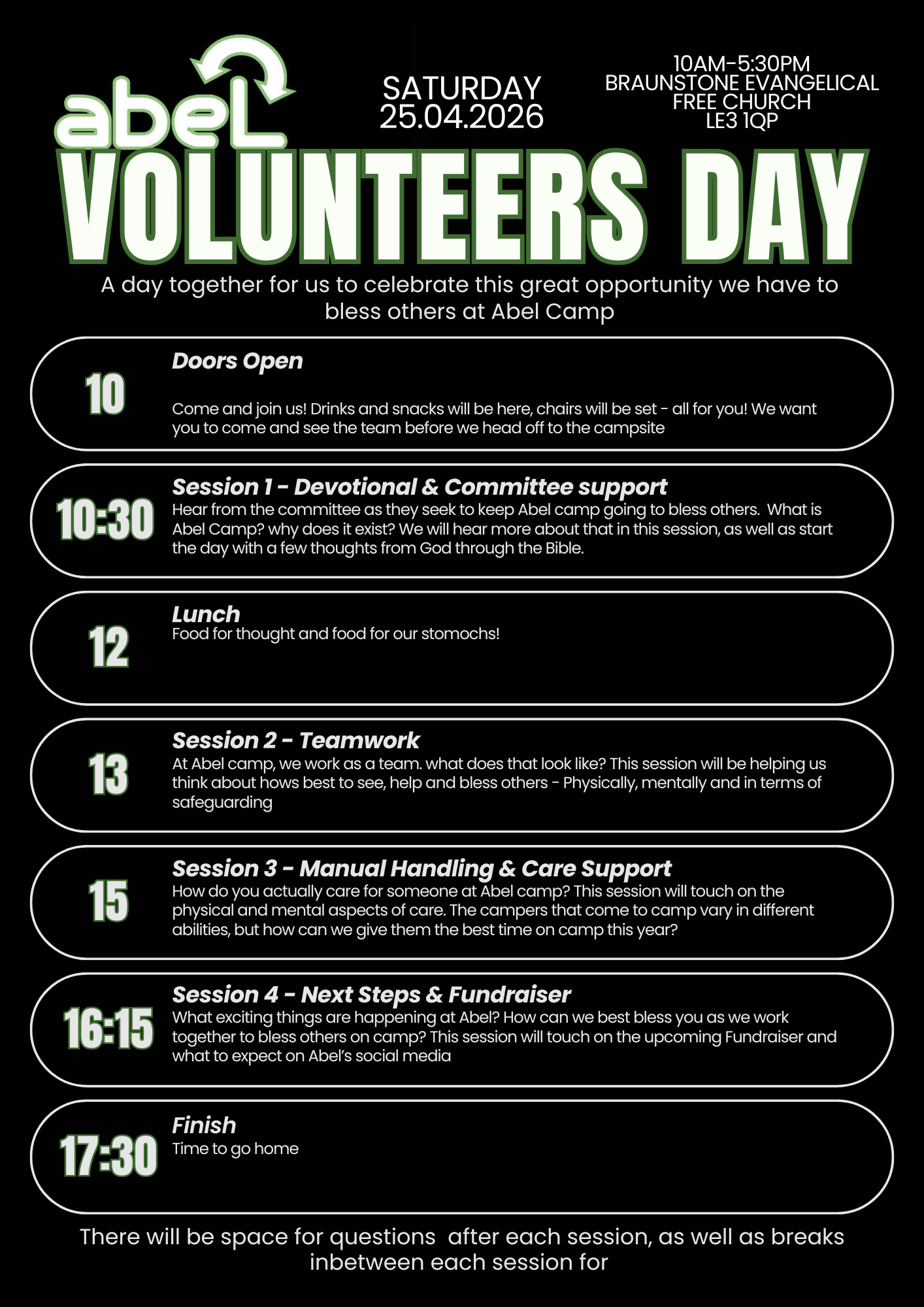We are excited to have you join us as we align together the reason behind why abel exists. Below is the timetable of what to expect during the day.